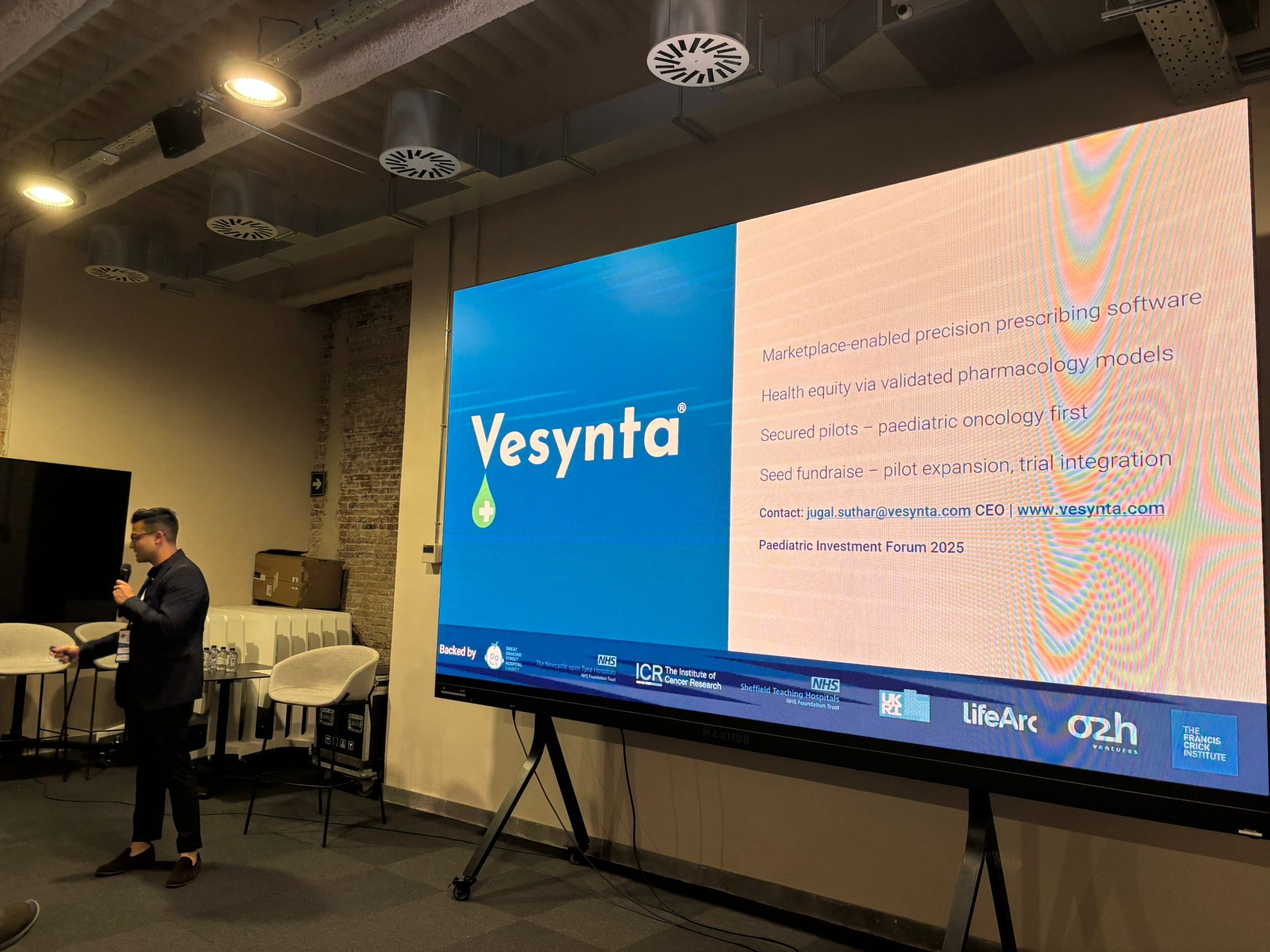Vesynta, con Jugal Suthar, presentó DosoLogic, una herramienta de soporte a la decisión que ofrece recomendaciones de dosificación personalizadas.